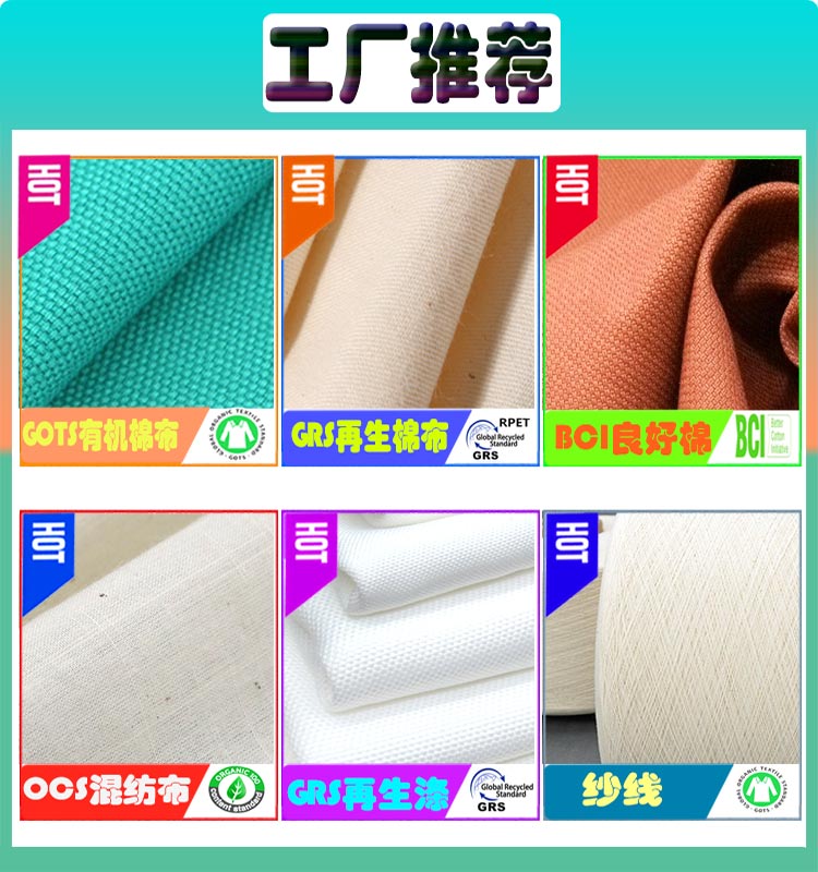 RCS回收再生棉帆布7安帆布手袋抱枕面料GRS再生棉布厂219克再生棉