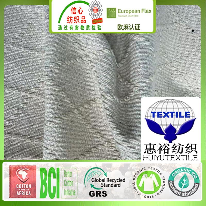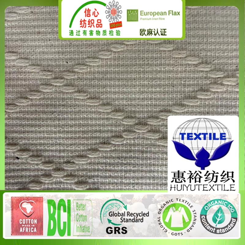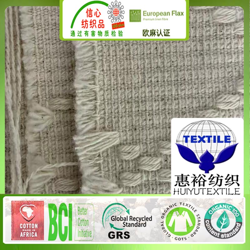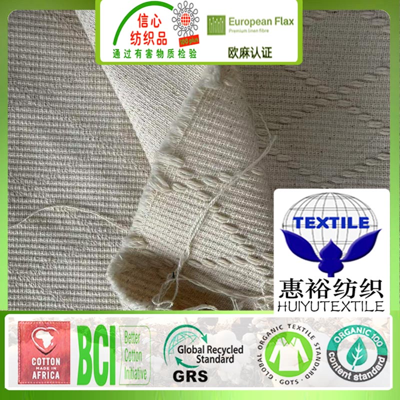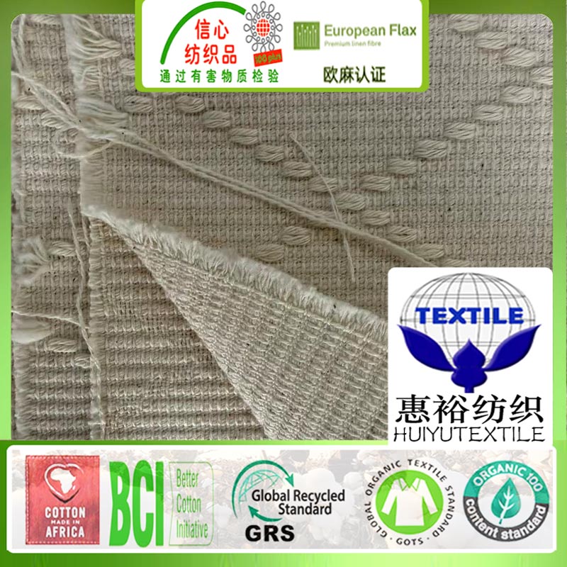 220克有机麻棉竹节布手袋裤子面料GOTS认证有机亚麻棉混纺布印花