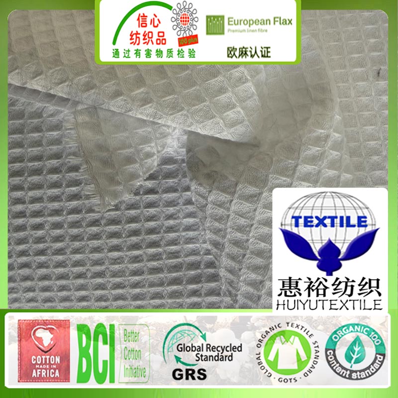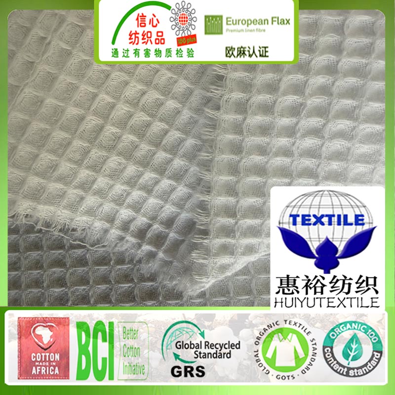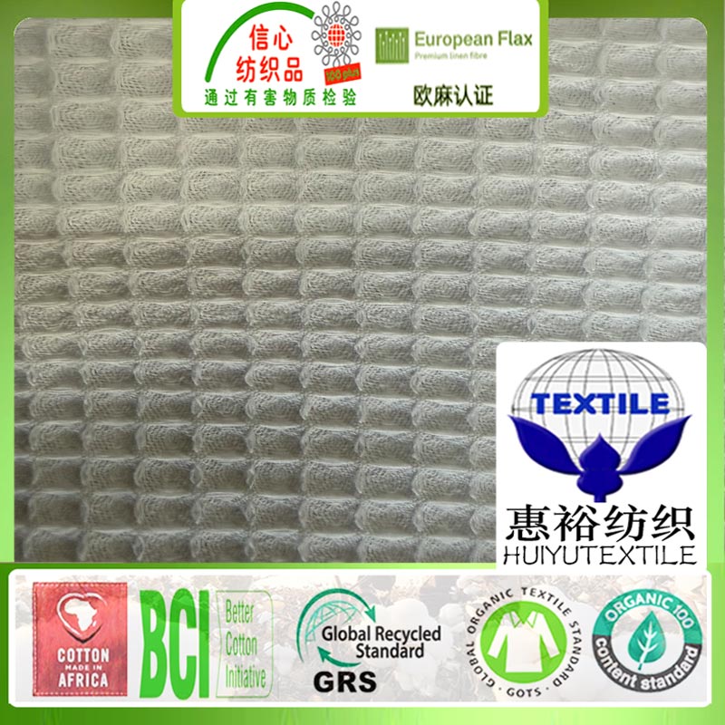 GOTS有机棉华夫格面料180克酒店浴袍蜂巢布数码印花有机棉布抱枕
